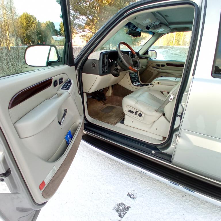 Harvinainen Escalade avolava eikä yhtään talvea ajettu, Ruosteeton ja huippukunnossa. Täydellinen Carfax historia Usa:sta josta -21 tuotu Suomeen ja täällä vain kesäautona. Kaikki napit toimivat eikä varoitusvaloja pala.Kattavasti vaihdettu uutta osaa, kaikki jarrut(levyt palat ja satulat) ja letkut ja putket, alapallonivelet,ylätukivarret,laturi, etupyörien laakerit,Hihna ja kiristimet,Bensapumppu,kaikki voimansiirron öljyt vaihdettu 16 tkm sitten. Takapenkit kaadettavat jolloin avolavalle saa enemmän tavaraa.